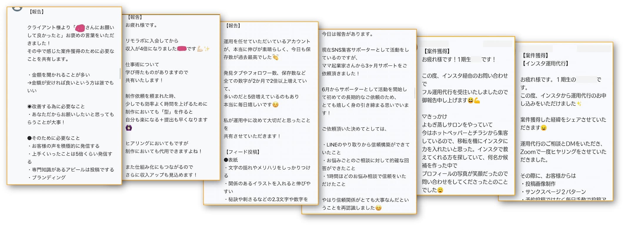 リモラボではメンバー専用のコミュニティチャットを通じてお互いの実績や成功事例を共有しています。